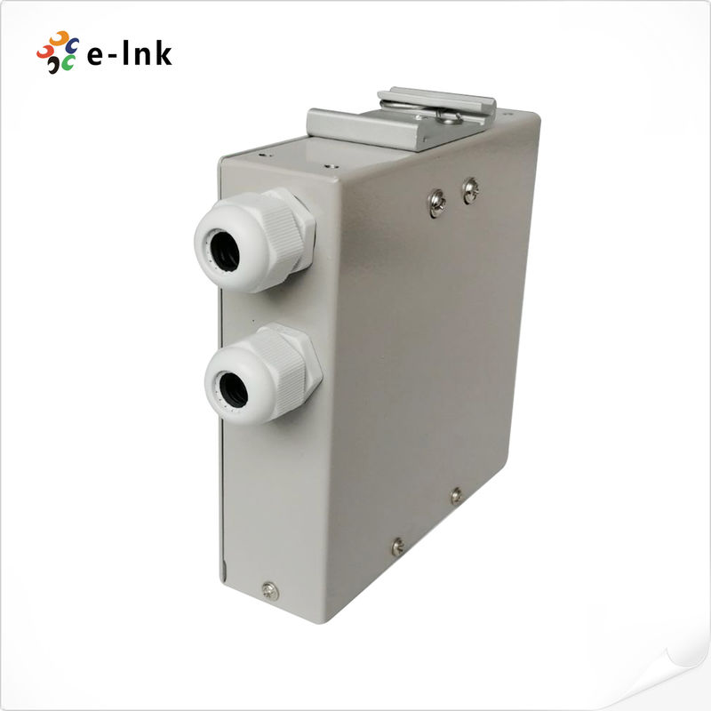 Boîte d'épissure fibre optique sur rail DIN 6 ports : 2 entrées de câble, sans adaptateurs ni pigtails, adaptée pour un adaptateur SC Duplex 6 ports, un adaptateur ST Duplex ou un adaptateur LC Quadruplex. |